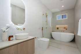 - 3 Luxurious bathrooms tiled floor to ceiling with freestanding bath & backlit mirrors