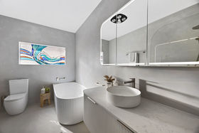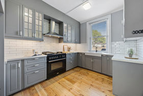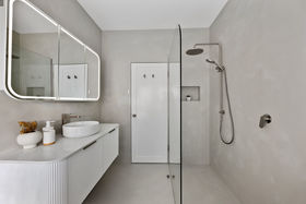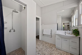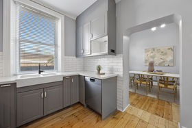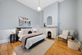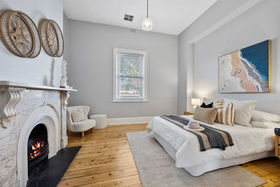 The original home has been thoughtfully reimagined and offers far more accommodation than you might think at first glance - the main house comprises three double bedrooms off a central hallway, each bedroom with a fireplace (two are marble), large formal lounge with fireplace plus a separate formal dining room. The generous chef's kitchen was updated with stylish finishes and is perfectly positioned adjacent to the dining room. The kitchen is fitted with quality appliances, including a commercial Hi-tech stove, a dishwasher, rangehood, and plenty of storage. A newly renovated spacious and sleek bathroom is elegantly finished with floor-to-ceiling micro cement decorative coatings displaying a seamless, modern look. Features a fluted corner freestanding bath, walk-in shower, toilet, large floating vanity with storage and a double mirrored shaving cabinet for additional storage along with makeup lighting, plus an exquisite 'seascape' stained glass window. There is also a European-style laundry for added convenience.