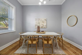 Occupying a coveted position on the corner of Bristol and Robert Streets, just steps to the beautiful white sands of Glenelg beach and a short stroll to the vibrant activity along Jetty Road, including tram to the city. Behind a private brush fence and secure gates, this c1880 character laden villa/cottage refreshed with its clean, modern white façade, blends timeless charm with modern comfort offering a spacious and versatile layout and flexible opportunities and options.