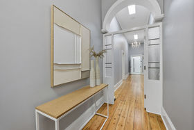 Step inside to a full-length hallway where high ceilings, a decorative archway, large rooms, classic fireplaces and beautiful timber floorboards speak to the home's enduring quality and craftsmanship.
