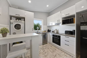 Empty nesters, families with solitude-seeking teens, or couples inspired to host - here's your haven. The back section of the home has been remodeled and converted into a cleverly designed space that provides one bedroom, one bathroom, and a light-filled open plan kitchen and laundry area. The uniquely styled studio apartment is fully self-contained, and a sound-proofing wall of cupboards has been installed between the main house and the apartment. Currently operating as successful short stay accommodation and independently managed, the apartment is separately accessible via the side entry, presenting an exceptional opportunity for homeowners seeking an additional income stream, or the astute investor.