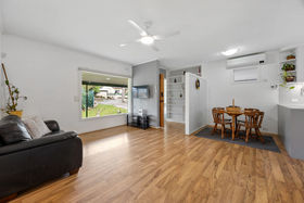 Three well-proportioned bedrooms provide comfortable accommodation, two featuring built-in wardrobes for added convenience. A neat and functional central bathroom services the home, while reverse cycle air conditioning and ducted evaporative air conditioning ensures year-round comfort.